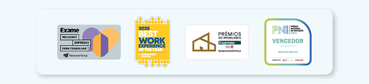 🏆 Reconhecida como a melhor empresa para trabalhar no imobiliário em Portugal.